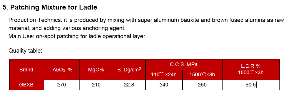 Refractory for Ladle